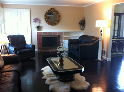 I like to share what it was before and how it looks after.... I didn't take too many before pictures because once everything got started it was moving very fast. It has been a while since I have changed the carpet and it was very grungy. The first thing I did was hire some people to take out the carpet and sand down the floor. I knew I wanted the floor to be dark because I want to make it look modern. I definitely learned a lot throughout this process.